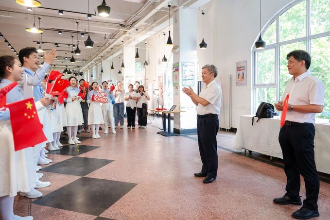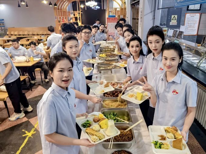 在北苑食堂,校领导和老师们迎接师生们归来。廖祥忠对师生们在纪念活动期间的辛勤付出与优异表现给予充分肯定,他表示,大家以专业能力与奉献精神圆满完成各项任务,充分展现了中传风采。他勉励师生们要将此次经历化为精神动力,继续弘扬志愿精神与担当精神,在未来的学习与工作中,持续彰显中传学子的时代风貌与使命情怀。