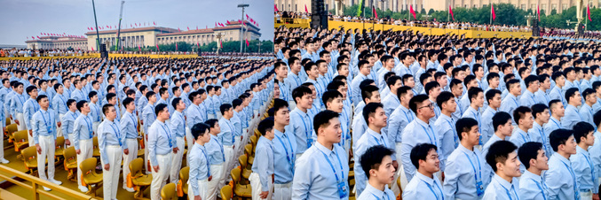 我校广场合唱团以优异表现、高质量演唱圆满完成任务。他们将《松花江上》《保卫黄河》等经典曲目背后的血泪史诗深植于心、融于歌声,以情带声、以声传史。在9月3日的天安门广场上,这支团队以最嘹亮的歌声,致敬历史、礼赞和平!