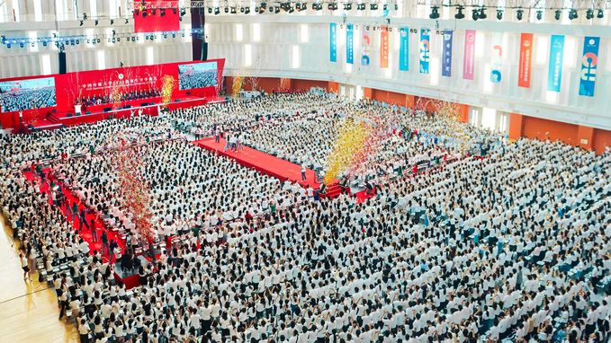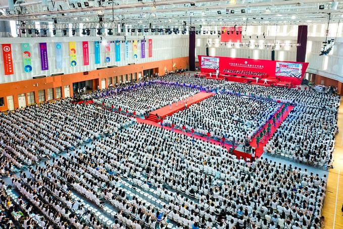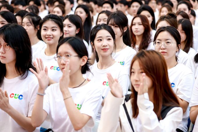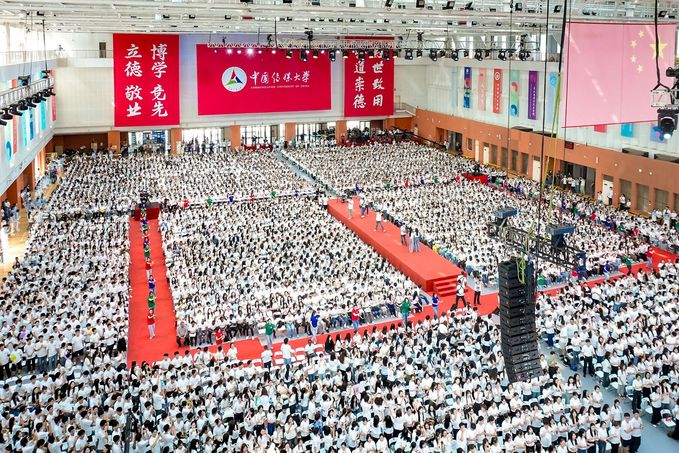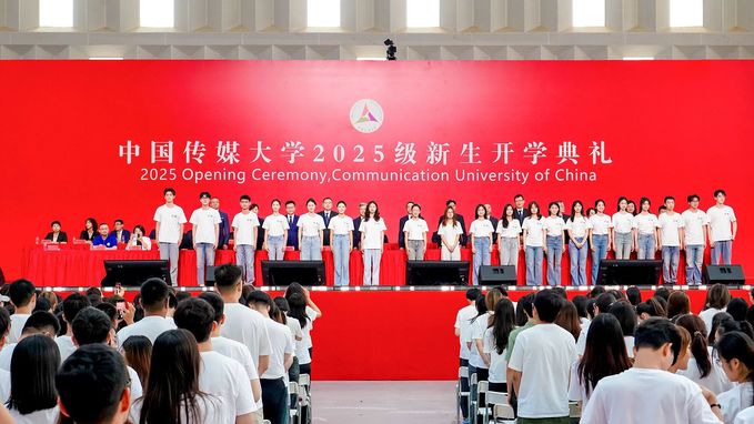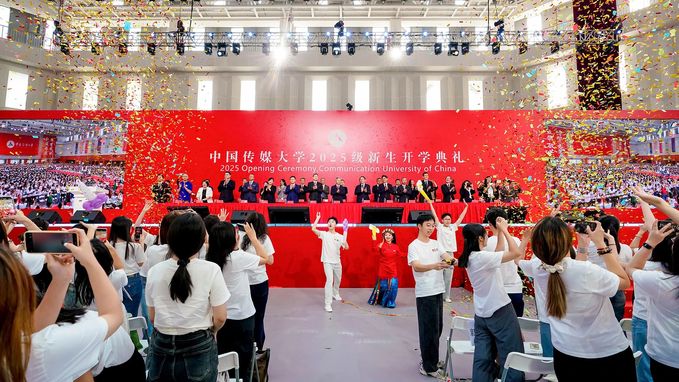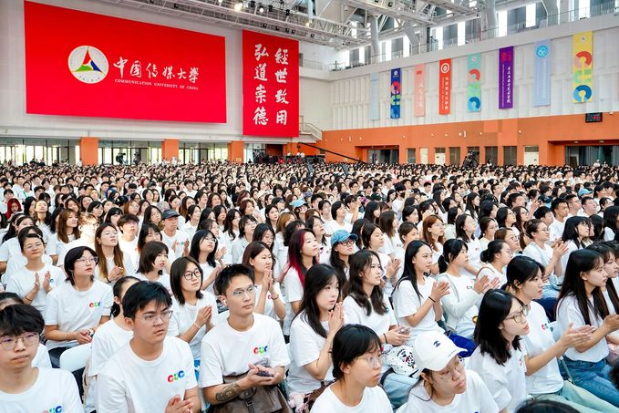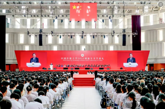 9月13日上午,中国传媒大学2025级新生开学典礼在学生活动中心隆重举行,6000余名新生参加典礼。