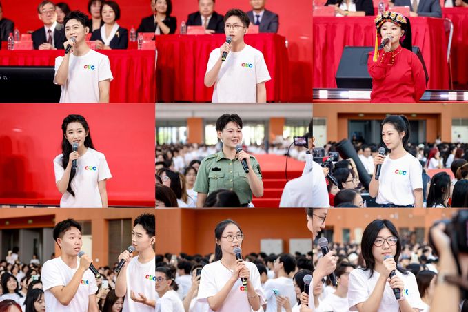新生代表发言环节打破传统,由“新生采访团”深入观众席随机采访,在问答交流的过程中展现我校新专业的魅力,突出新生特色和真实心声,以青春群像触发新生群体的共鸣。