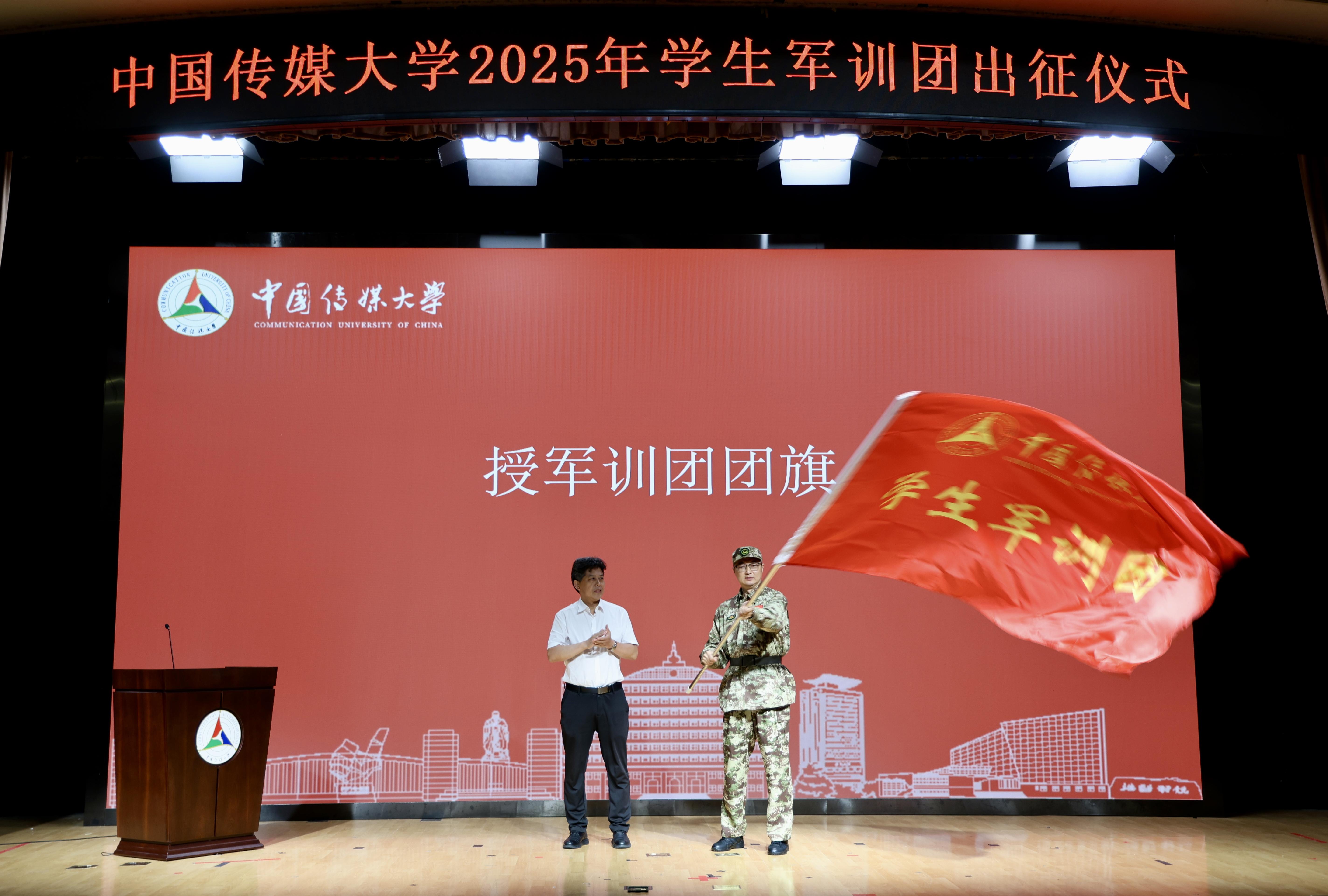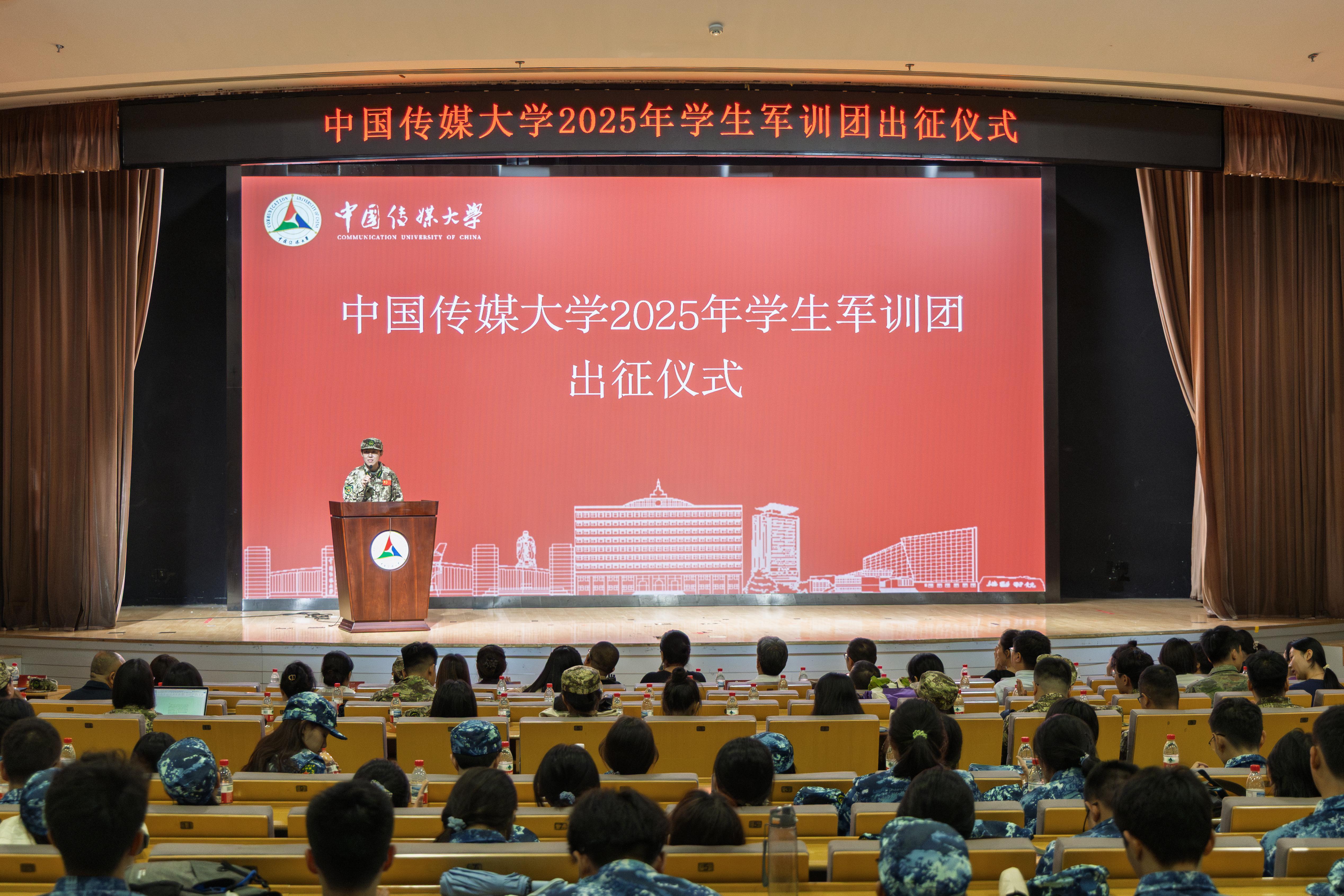 (通讯员 葛菲 齐霏 摄影 钟旗瑞 王骥轩 闫紫铭)9月15日下午,中国传媒大学2025年学生军训团出征仪式在中传讲堂举行。中国传媒大学党委副书记张绍华、学生工作部(处)部(处)长郭婧娜、保卫部(处)部长李伟、校医院院长董艳平、党委宣传部副部长储钰琦、本科生院副院长王晓茹,相关学院主管学生工作领导,军训团全体带队教师,退役大学生士兵代表以及2025级参训新生代表出席仪式。仪式由中国传媒大学武装部部长兼学生工作部(处)副部(处)长刘妍主持。
