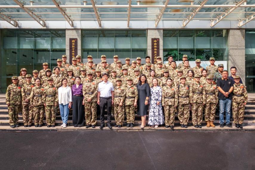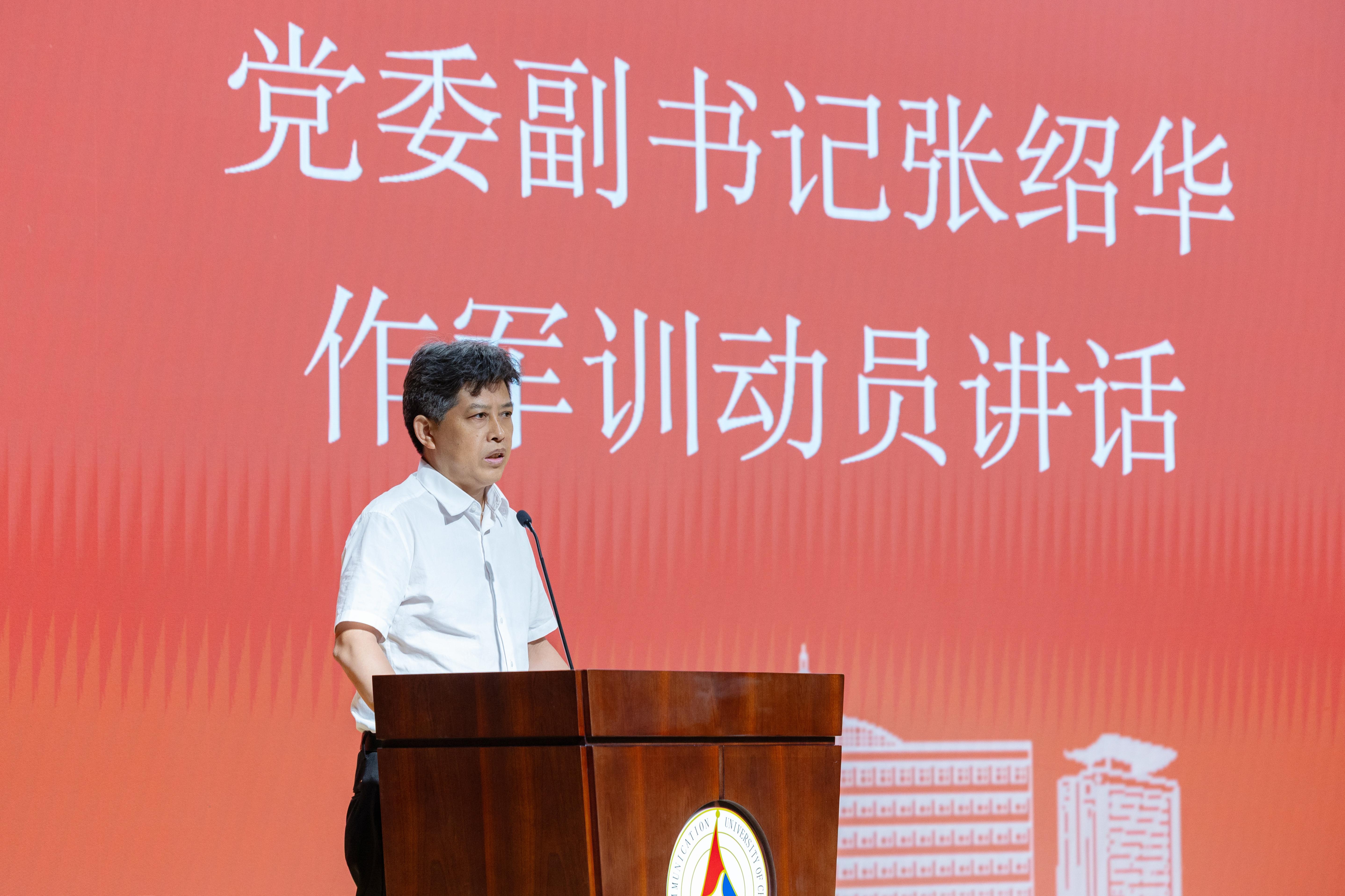 最后,张绍华作军训动员讲话,他指出,军训是大学生活的第一课,不仅是对身体素质的锻炼,更是对意志品质的磨砺;不仅关乎个人成长,更承载着国家和民族的未来希望。他代表学校党委,向奔赴军训一线的教师们致以敬意与感谢,并对带训教师提出三点要求:一是上好思政“大课”,筑牢理想信念根基,强化思想政治引领,落实立德树人根本任务;二是担起师者“大责”,以专业的素养和严谨的态度对待学生,守好安全底线,全力保障学生身心健康;三是传递教育“大爱”,以赤诚的情怀和温暖的行动关爱学生,将学校的育人温度传递到军训的每一个角落。希望所有带队教师以高度的政治责任感、饱满的工作热情和科学的训练方法,弘扬人民军队的优良传统与作风,与参训学生共同努力,高质量完成这堂融爱国主义教育、国家安全教育、思想政治教育于一体的军训大课。