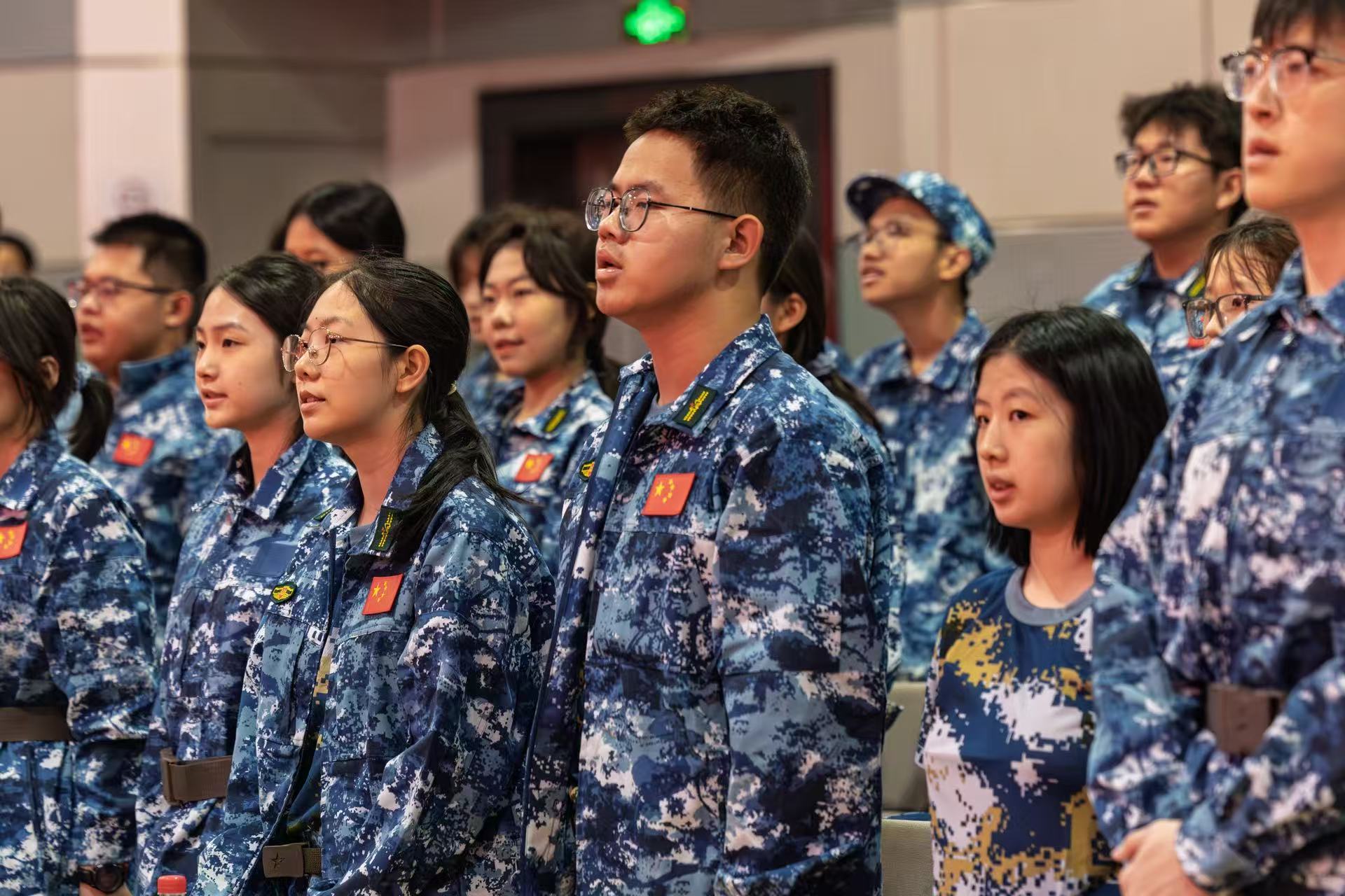 在庄严肃穆的国歌声中,本次学生军训团出征仪式拉开帷幕。