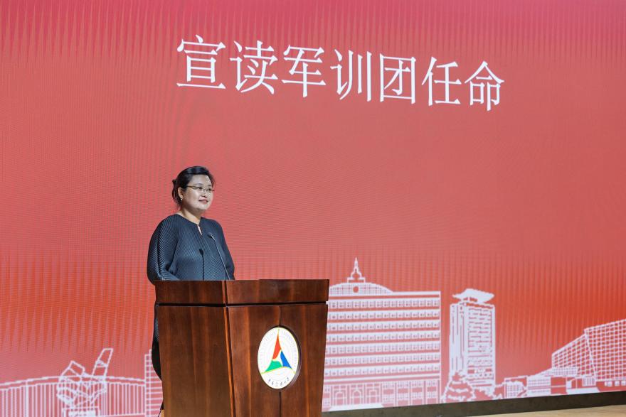 郭婧娜宣读军训团任命书,并宣布中国传媒大学2025年学生军训团正式成立。2025年学生军训团由体育部部长赵永锋担任政委,信息与通信工程学院党委副书记杨莉、外国语言文化学院党委副书记刘娇担任副政委。军训团共设立十支连队,并配备随团医生和伙食监督人员,为本次军训提供活动支持和安全保障。