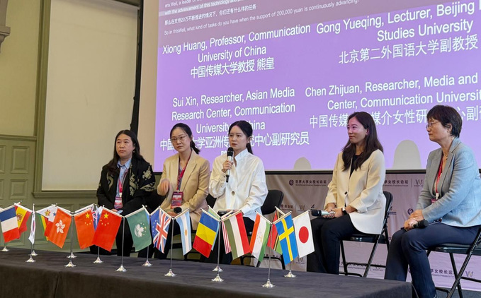 “欧亚高等教育对话”平行论坛由中国传媒大学外国语言文化学院院长、中国传媒大学亚洲研究中心执行主任文春英主持,曼彻斯特大学中国中心主任傅潇霄、圣若瑟大学副校长农韵淇、越南国家大学附属人文社会科学大学副校长邓氏秋香、兰卡斯特大学副院长王冬硕作主题发言。