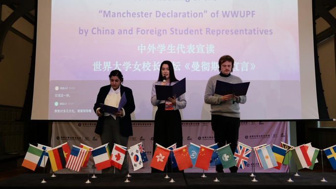 闭幕式上,全体与会嘉宾一致通过《曼彻斯特宣言》。《宣言》指出,应以文明互鉴夯实全球教育共同体基石,面对人工智能引发的就业重构、区域冲突和地缘政治竞争导致的人才流散,大学应成为社会稳定的压舱石。同时,未来教育必须找到人与科技的共生之道。《曼彻斯特宣言》确定第十二届世界大学女校长论坛将于2026年回归发源地北京。