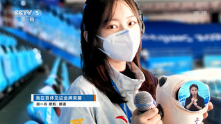 CCTV-5体育频道报道中传学子作为场馆播报员在冬奥现场说比赛