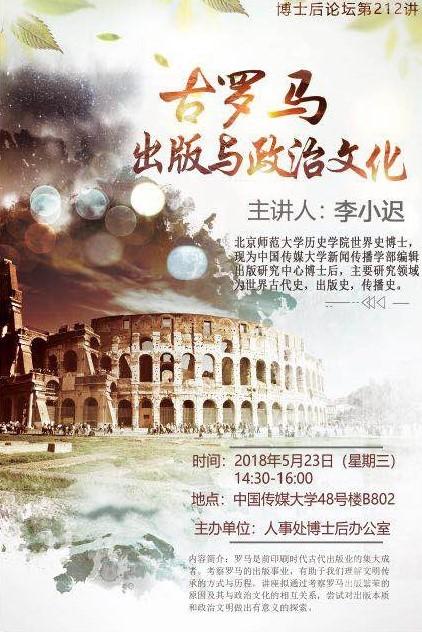 罗马是前印刷时代古代出版业的集大成者。古典文化灿若群星的精神文明成果,无不是在罗马以誊抄出版的形式得以传播和保存,并在文艺复兴时期被重新挖掘,构成西方文明近代化源泉。罗马是西方文化的中继者,而中继的方式是出版。考察罗马的出版事业,有助于我们理解文明传承的方式与历程。罗马帝国作为一个大疆域、多民族、社会阶层剧变、思想价值多元、意识形态不统一的国家,考察其国家与文明的命运,更能刺激人们思考当下中国的政治与社会问题。讲座拟通过考察罗马出版繁荣的原因及其与政治文化的相互关系,尝试对出版本质和政治文明做出有意义的探索。