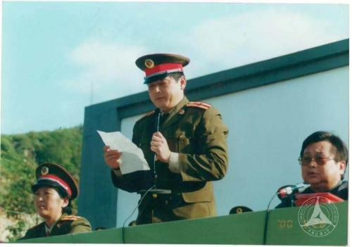 王京明老师宣读2000年军训嘉奖令