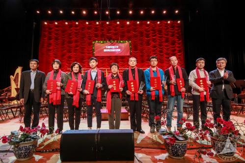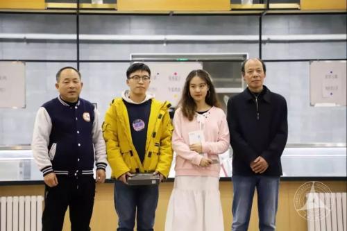 陈文申书记和廖祥忠校长为爱岗敬业标兵们颁奖(右三为槐师傅)