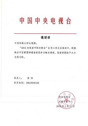2014年除夕之夜,我校合唱团80位团员参加了2015年中央电视台春节联欢晚会的演出,这也是合唱团连续第二年登上央视春晚的舞台。同学们以饱满的热情和精彩的表演向全国观众献上了最诚挚的新春祝福,更为学校争得了荣...