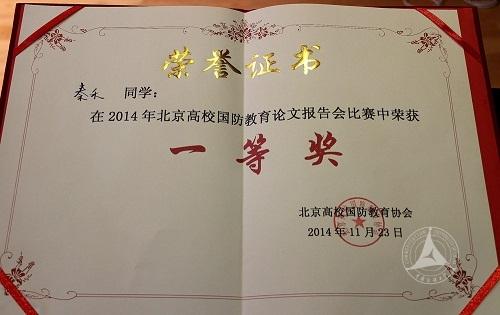 我校学生在北京高校学生国防教育论文竞赛中获一等奖