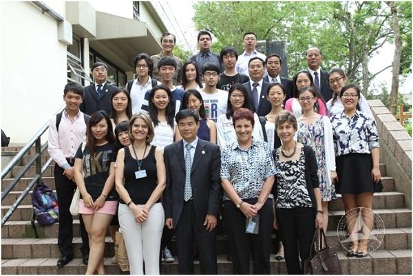 在UFRGS访问期间,代表团还专门看望了在该校文学院外语系学习的我校2012级葡语专业的15名同学。代表团的到来使同学们备感亲切和温暖,他们向陈书记和代表团汇报了在巴西近半年来的学习和生活情况,他们的所学、所见、所感、所获,并播放了同学们精心制作的汇报片。看到同学们在巴西良好的学习状态和学习效果,积极向上的精神面貌,陈书记非常高兴。他勉励同学们珍惜机遇,努力学习,以优异的成绩回报母校、报效祖国。