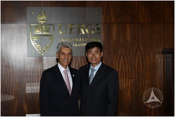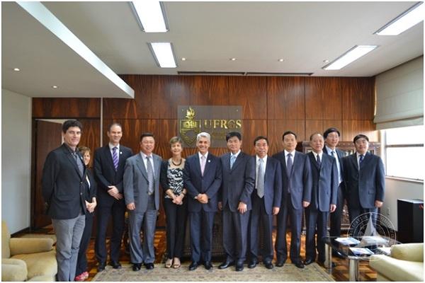 巴西南大河州联邦大学(UFRGS)是代表团此行的主要站点,第三届UFRGS孔子学院理事会会议将在此举行。刚刚在中国参加孔子学院大会归来的尼托校长及该校孔子学院院长、研究生院院长、国际事务负责人等对我校代表团的到访表示热烈欢迎。双方愉快地回顾了近年来两校友好往来与交流情况,对彼此给予的支持与卓有成效的合作表示满意。