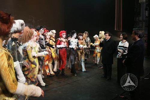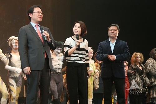 12月19日下午,由中国传媒大学、韩国东西大学主办,中国传媒大学艺术学部、韩国东西大学林权泽电影艺术大学承办的音乐剧《猫》专场演出在综合实验楼1500人报告厅举办。我校校长苏志武、副校长兼艺术学部学部长廖祥忠,韩国东西大学校长张济国、国际处处长郑灿与师生一起观看了演出。