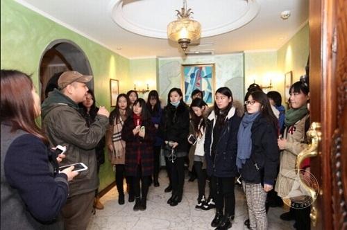 12月21日上午,经济与管理学院文化产业管理专业双学位班72名同学在班主任韩润磊带领下,来到位于艾忒堡公馆中的西洋艺博馆参观交流。