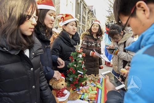 24日中午,一食堂十大新闻投票台前,小巧精致的圣诞树,装帧精美的60周年校庆纪念册,爱心满满的糖果盒,美观又实用的硬币桶,还有阳光又帅气的cuc校报主页君“抱抱”为大家送上冬日温暖的拥抱,使活动刚一开始就吸引了众多同学驻足围观。