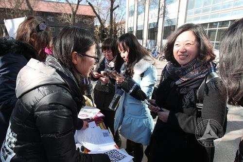除了学生外,这次活动还吸引了我校的老师前来投票。48教门前,有的老师下完课刚从教学楼走出来,就被楼前热闹的活动现场吸引。在听完工作人员介绍后,颇有兴趣地拿起选票投出了自己的一票。