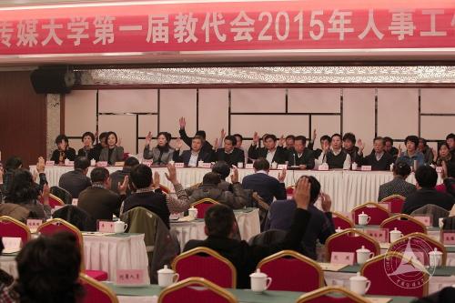 在听取各代表团交流汇报后,大会主席团宣读了关于《中国传媒大学职员制度实施办法(讨论稿)》、《中国传媒大学“白杨学者”聘任管理办法(讨论稿)》、《中国传媒大学“资深教授”评选管理办法(讨论稿)》、《中国传媒大学退休工作暂行规定(讨论稿)》的决议,全体与会代表以举手表决的形式通过了大会决议。