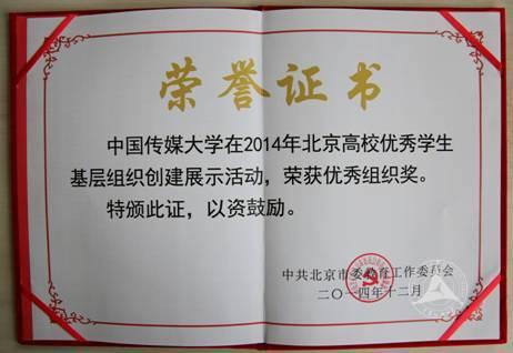 其中,理工学部2012级电子信息工程2班荣获2014年“我的班级我的家”优秀示范班集体称号,播音主持艺术学院2013播音与主持班、艺术学部2012广播电视编导(文艺编导、综艺节目编导方向)、新闻传播学部2013级广播电视编导(电视编辑方向)、文法学部2013级汉语言(应用语言学方向)、43号楼518宿舍、中蓝C区203宿舍、中蓝E区303宿舍,在2014年北京高校优秀学生基层组织创建示范活动中荣获“优秀基层组织”荣誉称号。
