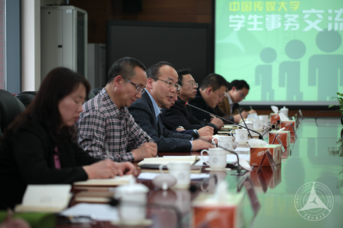 (通讯员 杨璇 摄影 王巽)4月15日下午,我校在2号楼918会议室举行第一次学生事务交流日座谈会。校党委副书记刘守训出席会议。来自9个学部(直属学院)的22名学生代表,以及学生处、教务处、财务处、保卫部、后勤管理处、就业指导中心、图书馆、体育部、计算机与网络中心、团委、校医院、基建处等13个职能部门的相关负责人及教师参加座谈会。座谈会由学生工作处处长张根兴主持。