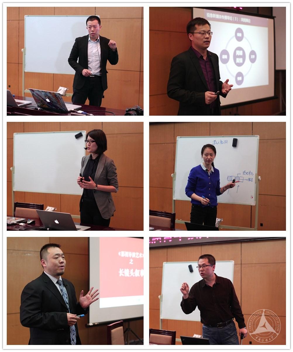展示活动现场,周逵老师通过“表叔”、“二胡书记”等生动详实的案例解读了网络舆论视像文本的特性;有着甜美酒窝的赵如涵老师,亲切温和地将“把关理论”的过去现在和未来娓娓道来;“发挥你们的创意,把我们的学校和生活拍得更美”,于然老师用充满创意的图片教大家“玩转时间”,充分体验快门的造型作用;徐智鹏老师用幽默风趣的语言和生动的影片案例讲述了如何用长镜头进行场面调度;张亚娜老师用女教师的知性优雅再一次征服了现场观众,将“数字信号可能产生的质量损伤”一一道来;田少华老师用特有的理工科幽默方式讲解了“刚体定轴转动定理和角动量定理”。