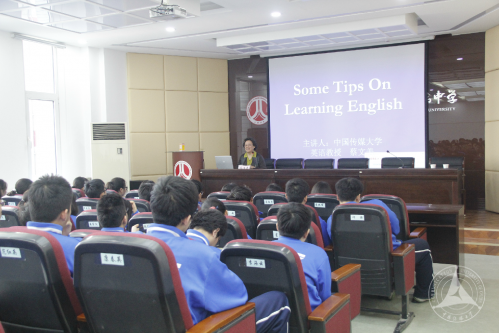 4月14日下午,二外附中邀请我校关工委委员蔡文美教授给高中学生和部分教师讲授如何学习英语。