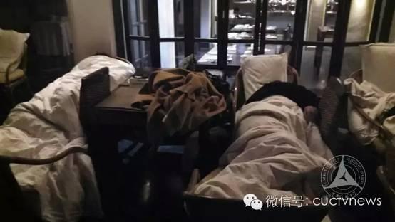 代表团成员在酒店一层走廊过夜(图片提供:王博)