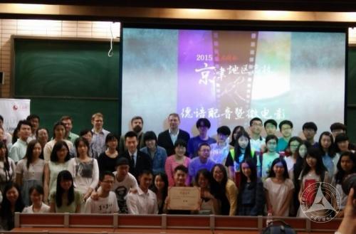 (通讯员 吴宏宇)5月17日下午2点,2015年“人民网杯”京津地区高校德语配音暨微电影大赛在北京外国语大学如期举行。外国语学院2013级与2014级德语专业学生与配音组其他八所高校以及微电影组其他五所高校激烈角逐,表现优异,包揽了本次大赛的全部三项大奖——配音组一等奖、微电影组一等奖以及微电影组最佳人气奖。本届大赛由北京外国语大学主办、人民网赞助,邀请了我校以及北京外国语大学、北京第二外国语学院、北京语言大学、中国人民大学、北京理工大学、中国政法大学、南开大学和天津外国语大学共九所高校参赛。主办方今年还首次引入微电影竞赛组,共有包括我校在内的六所高校进行决赛。