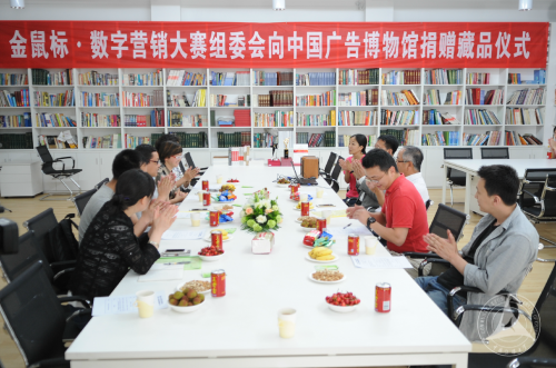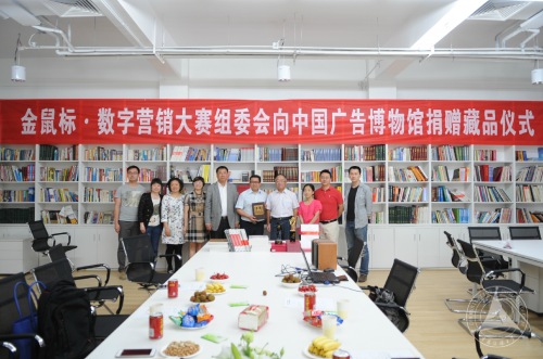5月19日上午,金鼠标·数字营销大赛组委会向我校中国广告博物馆捐赠第二届到第六届《金鼠标·数字营销大赛集萃》及《Digital marketing,颠覆你的营销想象——金鼠标·数字营销大赛经典案例100集锦》,以及金鼠标·数字营销大赛奖杯等珍贵藏品,并在中国广告博物馆文献会议研究室举办捐赠签字仪式。出席此次捐赠活动的有金鼠标·数字营销大赛执行主席、网赢天下网首席架构设计师方立军,国家广告研究院院长、中国传媒大学广告学院院长、中国广告博物馆秘书长丁俊杰,国家广告研究院副院长、中国传媒大学广告学院教授张翔,金鼠标·数字营销大赛媒介运营总监陈秋红女士,网赢天下网首席内容官、金鼠标·数字营销大赛副秘书长张志宏女士,金鼠标·数字营销大赛商务拓展总监伍超等。