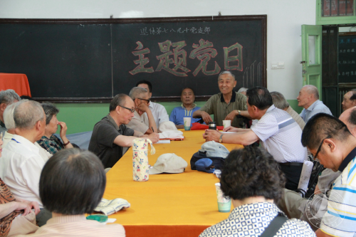 (通讯员 王瑾言 摄影 赵志刚)“七一”党的生日到来之际,离退休人员党委举办“我看习近平这几年”主题党日活动。离退休第七、八、九、十党支部的56名离退休党员聚集一堂,庆祝建党94周年。6月3日上午,主题党日活动在北院活动室举办。离退休党委委员、第八党支部书记张文主持。