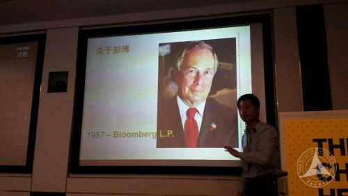 在彭博公司接洽的是我校09届毕业生刘迨浡,毕业后申请就读了美国的波士顿商学院,现于彭博公司任职,负责彭博终端的推广培训工作。首先,刘老师向同学们介绍了公司的产生背景、企业文化以及创始人迈克尔· 布隆伯格(Michael R. Bloomberg)的传奇经历。同时,为同学们演示了彭博社数据系统终端的强大功能,包括对新闻资讯的获取,对金融数据的挖掘,以及如何方便快捷的通过收集各种经济数据来分析宏观经济走势。同学们也通过亲自操作体验了彭博终端的实用性,感受到了彭博社信息资源库的全面、准确。
