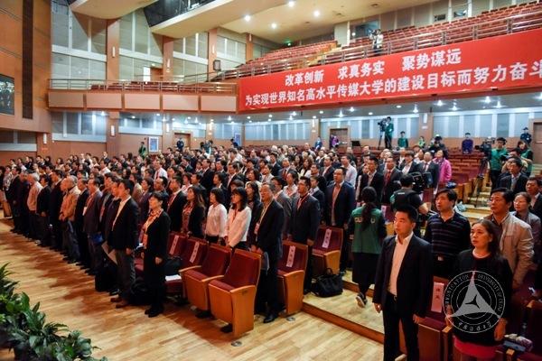 报告最后,陈文申满怀激情地说,全面提升创新能力,加快世界知名高水平传媒大学建设步伐,谱写中国传媒大学更加灿烂美好的篇章,为实现中华民族伟大复兴的“中国梦”贡献力量,是时代赋予我们的光荣使命。“功崇惟志,业广惟勤”,让我们紧密团结在以习近平同志为总书记的党中央周围,满怀信心、同心同德、务实勤勉、深化改革,为把我校建设成为世界知名高水平传媒大学而努力奋斗!