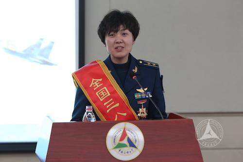 李凌超女士以《超越自我 追梦蓝天》为题,分享了她作为女飞行员的成长经历和感受。她表示:“我把蓝天作为实现梦想的舞台,最好的青春年华都给了我挚爱的部队、我最钟爱的飞行事业。‘超越自我、坚韧不拔、敢于牺牲、甘于奉献’,这是我们的女飞精神,我会和姐妹们一起接力传承、发扬光大。”