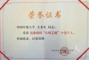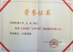 会上对北京高校统战工作特色与创新项目、“心桥工程”优秀项目及先进党外代表人士进行了表彰。中国传媒大学有多个项目及个人获奖。鲁景超教授荣获北京高校“心桥工程”十佳个人;民盟王越教授、民进张晶教授荣获北京高校“心桥工程”先进党外代表人士称号;民盟中国传媒大学支部“《养生厨房》老年健康美食应用游戏”项目荣获北京高校“心桥工程”优秀项目;“围绕中心任务,借助科研模式,创新党外人士建言献策工作”荣获北京高校统战工作最高奖项“十大品牌”项目奖。
