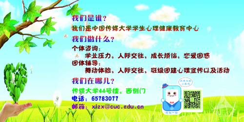 (通讯员 李湾)为深入推进我校心理素质教育工作,提高学生心理健康水平,学生处学生心理健康教育中心于4月中旬到5月末组织开展2016年暨我校第十二届“5﹒25”大学生心理健康节活动。本届心理健康节以“读懂你我,共享青春年华”为主题,围绕“大学生人际关系”这一重要心理议题,旨在帮助学生学会积极认识自我和他人、构建和谐的人际交往圈、探寻自我价值及生命意义,共同谱写炫丽多彩的青春篇章。