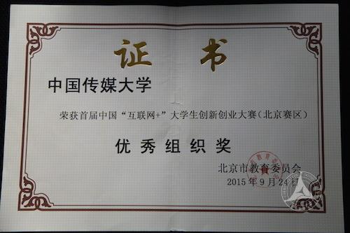 (通讯员 栾天天)经北京赛区组委会组织专家评审,中国传媒大学在“首届中国‘互联网+’大学生创新创业大赛”中获得北京赛区二等奖2项、三等奖3项,同时获北京赛区“优秀组织奖”。