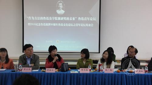 论坛上下午分为“青年鲁迅研究中存在的问题与困惑”、“话剧《大先生》中的鲁迅形象塑造”、“《文章在兹》新书研讨”三个专场进行专题讨论。开幕式由青年学者刘春勇主持。文法学部学部长李怀亮教授致欢迎辞,并简单介绍了我校文法学部的学科建设情况。