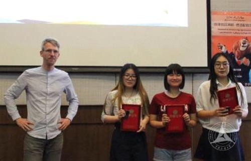 (通讯员 姜薇)2016年5月8日下午,“2016人民网杯”京津地区高校德语配音比赛在北京外国语大学东校区三百人礼堂顺利拉开帷幕,北京大学、北京外国语大学、中国人民大学等京津地区11所高校参赛。我校外国语学院德语专业教师刘晓作为评委之一带领学院四名德语专业学生初金聪、孙雪晴、鲁清钦、张佳欣参加了比赛。经过激烈角逐,我校学生取得了三等奖的优异成绩。