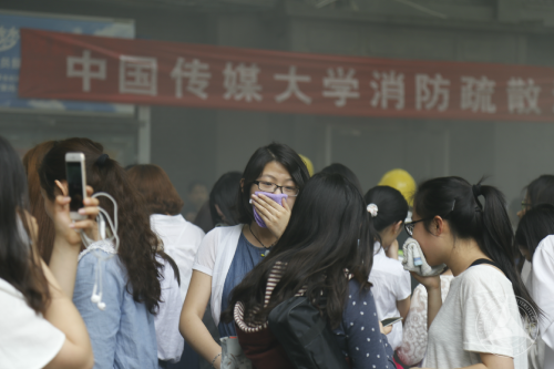 (通讯员 甘向阳 摄影 乔星榕)“演练开始!”随着刘守训副书记一声令下,瞬时,滚滚浓烟弥漫了公寓各个楼层。5月11日下午,学校在38号楼学生公寓举行了消防应急疏散演练,演练活动以38号楼222房间发生火灾为背景,模拟环境贴近真实。