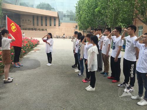 本次活动首先为新入团的同学们举办了集体入团宣誓仪式。在团旗下,十余位新团员进行了庄严宣誓,之后老团员代表为他们戴上了团徽,表达祝愿和责任的传递。