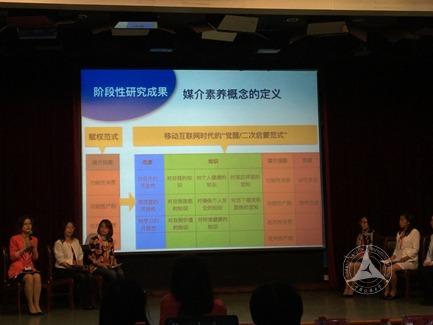 耿益群教授也就《移动互联网时代新闻素养课程建设》做了学术发言。结合移动互联网时代的媒介环境,从教学目标、课程设置到教学评估,从社会环境、学生成长、教育发展等方面的需求角度,向与会者分享由张开老师领衔创建的《新闻素养》课程两年来的开展情况。