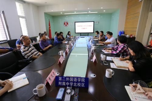 老师、同学们及关工委委员在附中校长和副校长的热情接待下,一起进入了会议室开始了对此次活动的探讨与沟通。