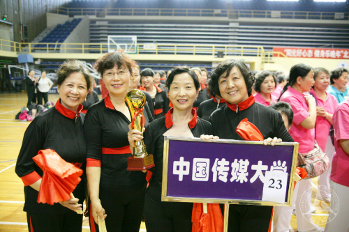 由北京市教工委和北京市教委联合主办的“北京高校老同志健身项目展示活动”是深受高校老同志喜爱的一年一度的常规体育活动。为展现我校离退休教师积极乐观、快乐阳光的精神状态,我校组织了28名退休女教师编排表演的《木兰扇:彩蝶纷飞》,在所有高校展示活动中独树一帜,整套表演造型美观,柔中寓刚,动作协调,舒展大方,加之“我和你”歌曲音乐的伴奏,更增添了这套武术舞蹈的独特魅力!整个展示过程全场观众的掌声热烈,并得到活动组委会评委的充分肯定,最终获得大会“阳光风采奖”。离退休人员管理处自4月11日接到展示活动任务以来,在短短的时间内完成了宣传动员、定曲目、选队员、买道具、配服装、教练动作、创新编排等一系列过程,全体28名退休女教师克服种种困难,白天没时间集中就利用每天晚上的时间排练;没场地就利用室外或划整为块的办法解决。经过连续24天的不懈努力,最终展示在大家面前的是整齐的队伍、优美的舞姿和昂扬的精神面貌。她们用舞步诠释着她们对退休生活的幸福憧憬,她们的笑脸体现了一代传媒人的乐观和自信。