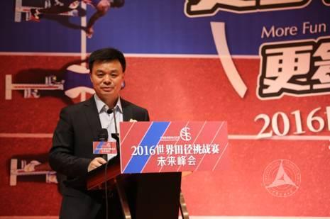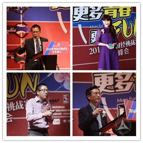 (通讯员 韩洁 摄影 赵以晗 贾植)5月17日上午,以“更多青春 更多FUN”为主题的2016世界田径挑战赛未来峰会在北京举行。本次峰会由北京市田径运动协会、北京大学中国体育产业研究中心、TTD腾提度体育传媒主办,中国传媒大学经管学部商学院、 TTD中国体育影响力指数组委会、中国传媒大学体育文化与商业创新研究中心承办。中央电视台体育频道总监江和平、前IMG集团高级副总裁及中国区总经理王应权、中石化易捷销售有限公司副总经理李宏、TTD腾提度体育传媒董事长苏玲、中国传媒大学体育文化和商业创新中心主任孙道军等参会并做了精彩发言。