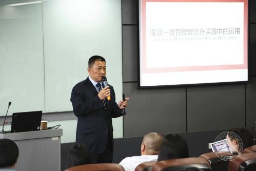 冉永夫总裁以《浅谈一些管理理念在实践中的运用》为题,围绕时间管理、变革管理、自我管理三方面等内容展开话题。针对时间管理,他强调不是管理时间,是对自己的约束,他围绕变革管理的变革适应曲线做了详尽的介绍,认为管理者只有拥抱变革,勇敢的尝试,不在红色沼泽区域长时间逗留,追随变革才能迎来新的机遇。在和同学们探讨如何自我管理时,他认为,自我约束力非常重要,但是对于现实情况而言,却是一件非常困难的事情,这是由于人们不够了解自己,将要做的事情根据优先程度分先后顺序,目标具体明确后才具有可实现性。