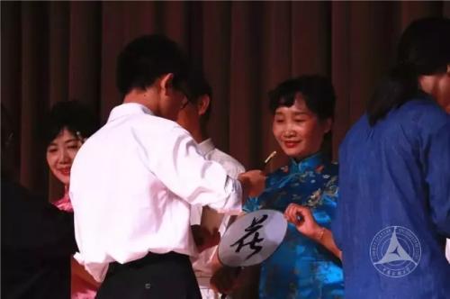 决赛中场,我校书法协会与三间房社区为观众们联合奉上了节目《家乡的小河》。油纸伞、旗袍,团扇、笔墨纸砚等元素的结合,使整场表演充斥着古典韵味。