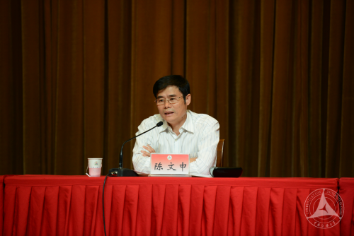 在成立大会上,艺术学部党委书记兼副学部长彭文祥代表艺术学部做出发言,他代表艺术学部广大教师坚决拥护校党委决议,并回顾了艺术学部三年来所取得的成绩,同时强调艺术学部未来工作的既定目标及重点。