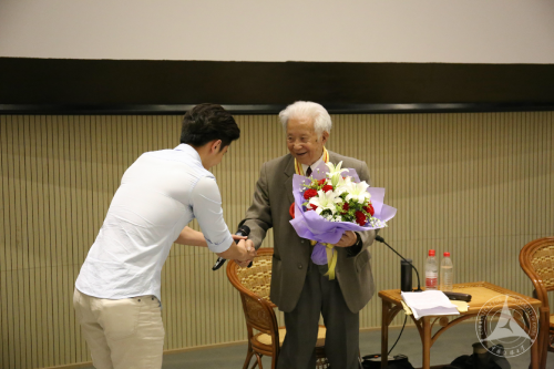 本次团课结合我校征兵工作,邀请了部分参军入伍的学生前来参加,团课最后,由我校2010年参军入伍的学生温焌意代表同学们为老人献花,对老一辈革命家为中华民族的解放做出的贡献表示敬意,并表达了作为一名大学生携笔从戎的爱国热情。
