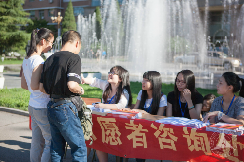 考试开始前,学校的工作人员和安保人员早已就位,为考生和家长提供服务。学校还在西门、南门、48号教学楼和孔子广场设立了志愿者咨询处,提供招考咨询。同时,学校还将一食二食作为家长休息室,方便家长等待考生。